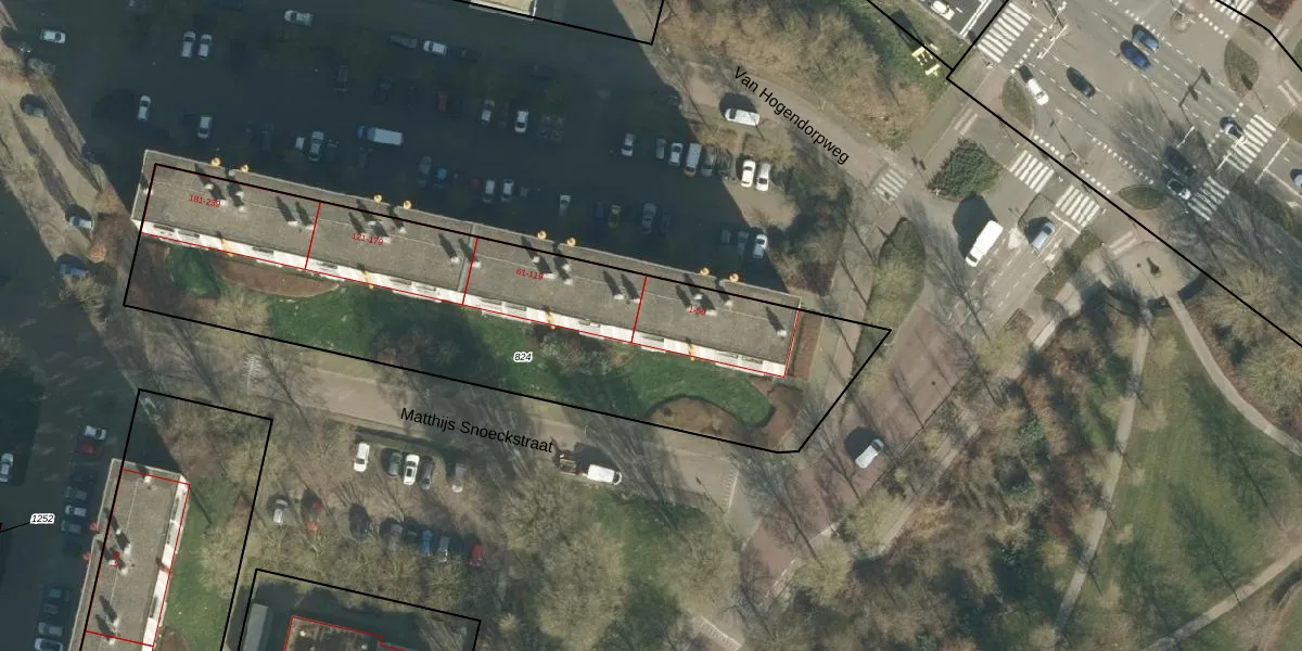 Het perceel waarop Van Hogendorpweg 41 staat heeft een oppervlakte van 2454 m². Dit is een zeer groot perceel. De perceeloppervlakte wordt geregistreerd door het Kadaster. Gedetailleerde informatie over de maten van dit perceel kunt u vinden in het rapport Kadastrale kaart met maatvoering van Van Hogendorpweg 41.