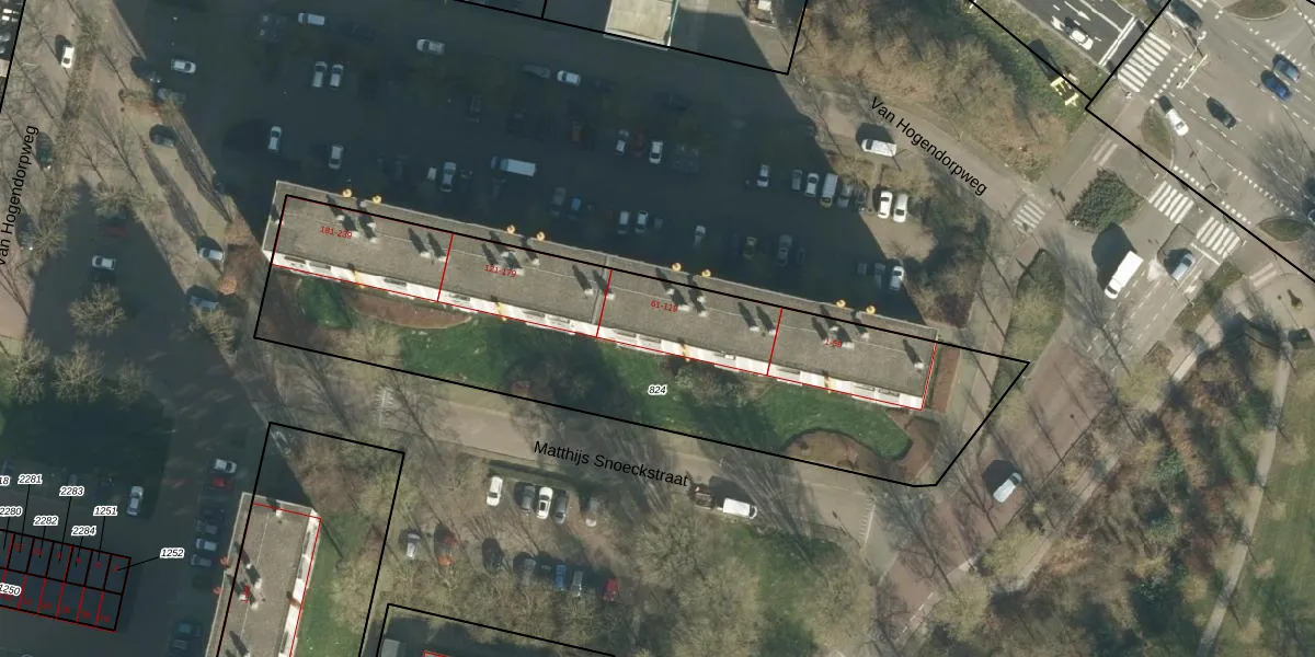 Het perceel waarop Van Hogendorpweg 77 staat heeft een oppervlakte van 2454 m². Dit is een zeer groot perceel. De perceeloppervlakte wordt geregistreerd door het Kadaster. Gedetailleerde informatie over de maten van dit perceel kunt u vinden in het rapport Kadastrale kaart met maatvoering van Van Hogendorpweg 77.