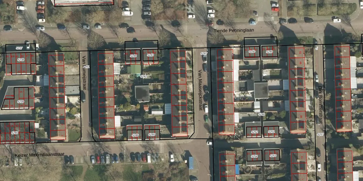 Van Maaseijckstraat 9 is gelegen op kadastraal perceel GRC00A5242. Deze kadastrale aanduiding is uniek en wordt gebruikt door het Kadaster om eigendomsrechten en andere zakelijke rechten vast te leggen. Het perceel maakt onderdeel uit van de kadastrale gemeente Gorinchem.
