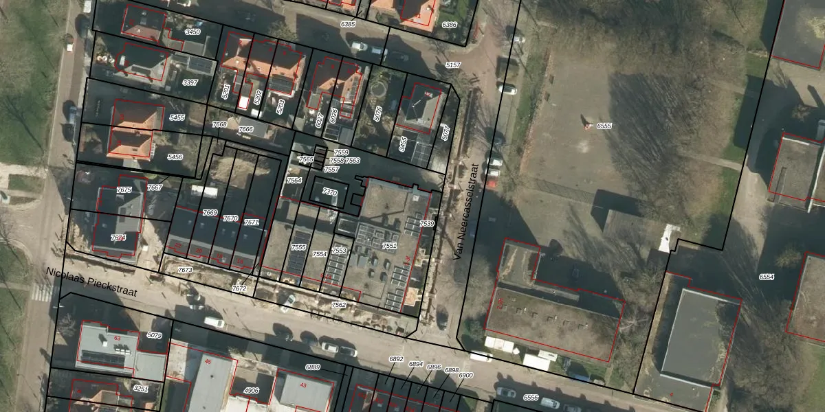 Het perceel waarop Van Neercasselstraat 1-d staat heeft een oppervlakte van 639 m². Dit is een groot perceel. De perceeloppervlakte wordt geregistreerd door het Kadaster. Gedetailleerde informatie over de maten van dit perceel kunt u vinden in het rapport Kadastrale kaart met maatvoering van Van Neercasselstraat 1-d.