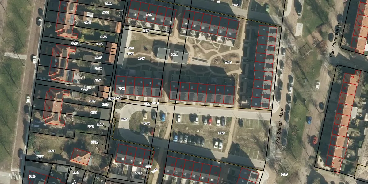 Van Zomerenlaan 45 is gelegen op kadastraal perceel GRC00A7765. Deze kadastrale aanduiding is uniek en wordt gebruikt door het Kadaster om eigendomsrechten en andere zakelijke rechten vast te leggen. Het perceel maakt onderdeel uit van de kadastrale gemeente Gorinchem.