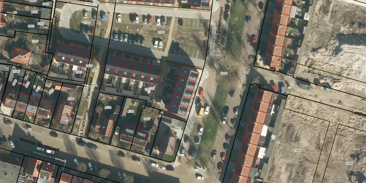 Van Zomerenlaan 7 is gelegen op kadastraal perceel GRC00A7767. Deze kadastrale aanduiding is uniek en wordt gebruikt door het Kadaster om eigendomsrechten en andere zakelijke rechten vast te leggen. Het perceel maakt onderdeel uit van de kadastrale gemeente Gorinchem.