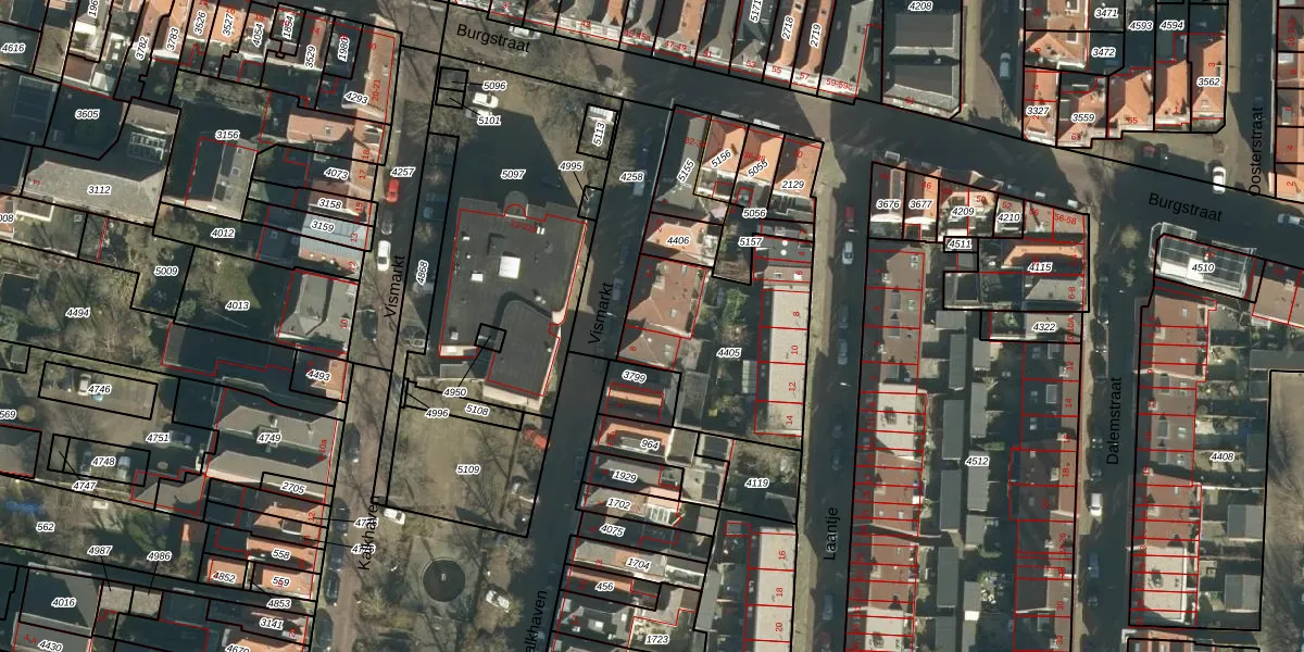 Het perceel waarop Vismarkt 7 staat heeft een oppervlakte van 690 m². Dit is een groot perceel. De perceeloppervlakte wordt geregistreerd door het Kadaster. Gedetailleerde informatie over de maten van dit perceel kunt u vinden in het rapport Kadastrale kaart met maatvoering van Vismarkt 7.