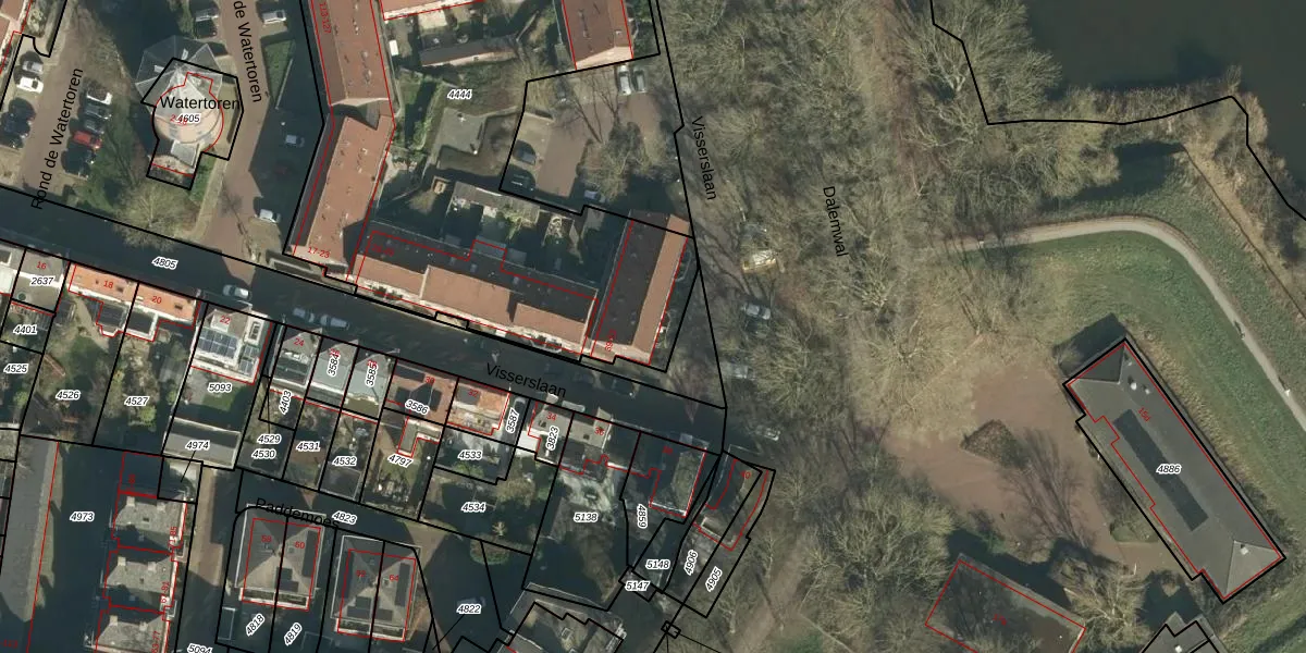 Visserslaan 51 is gelegen op kadastraal perceel GRC00C4444. Deze kadastrale aanduiding is uniek en wordt gebruikt door het Kadaster om eigendomsrechten en andere zakelijke rechten vast te leggen. Het perceel maakt onderdeel uit van de kadastrale gemeente Gorinchem.