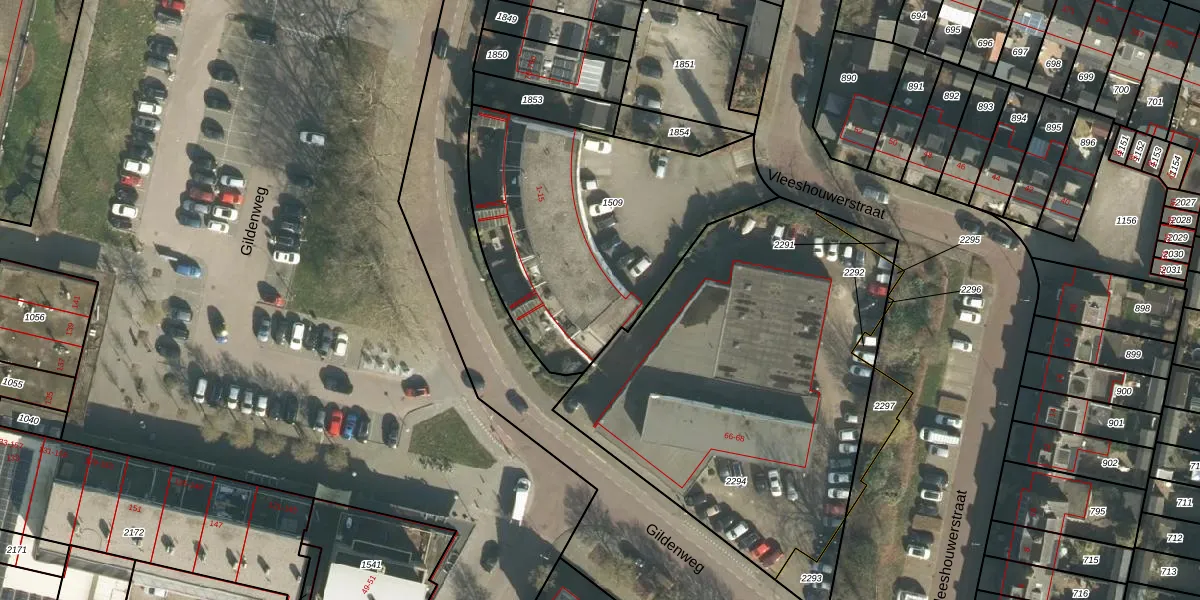 Het perceel waarop Vleeshouwerstraat 1 staat heeft een oppervlakte van 1298 m². Dit is een zeer groot perceel. De perceeloppervlakte wordt geregistreerd door het Kadaster. Gedetailleerde informatie over de maten van dit perceel kunt u vinden in het rapport Kadastrale kaart met maatvoering van Vleeshouwerstraat 1.