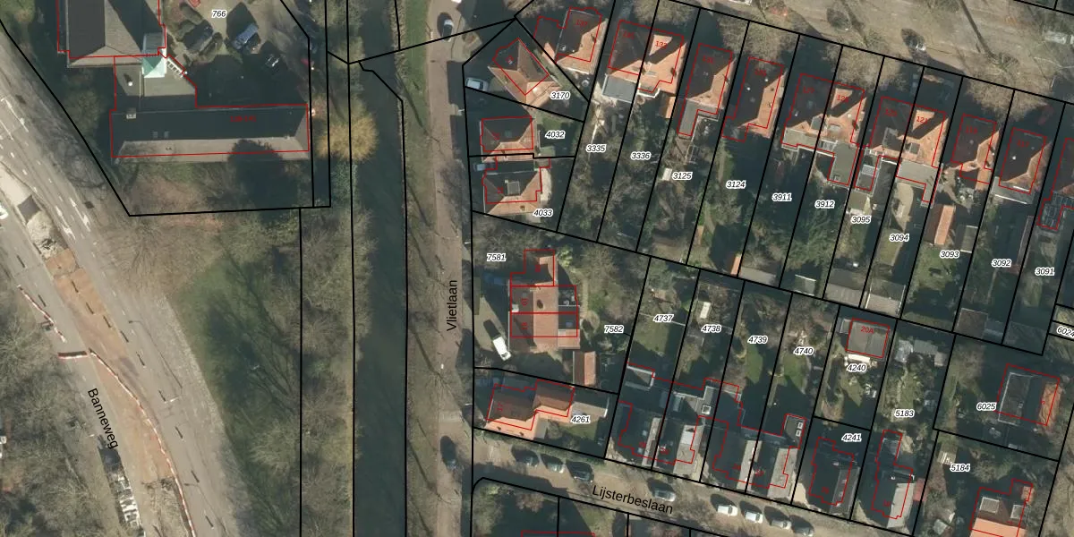 Het perceel waarop Vlietlaan 20 staat heeft een oppervlakte van 834 m². Dit is een groot perceel. De perceeloppervlakte wordt geregistreerd door het Kadaster. Gedetailleerde informatie over de maten van dit perceel kunt u vinden in het rapport Kadastrale kaart met maatvoering van Vlietlaan 20.