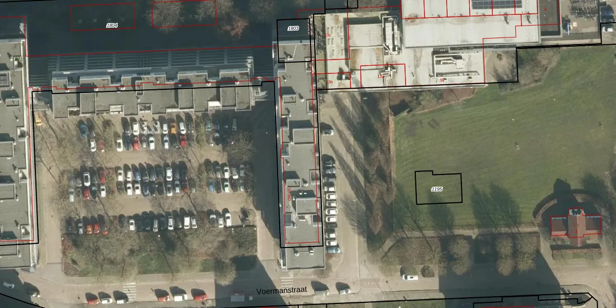 Het perceel waarop Voermanstraat 250 staat heeft een oppervlakte van 4482 m². Dit is een zeer groot perceel. De perceeloppervlakte wordt geregistreerd door het Kadaster. Gedetailleerde informatie over de maten van dit perceel kunt u vinden in het rapport Kadastrale kaart met maatvoering van Voermanstraat 250.