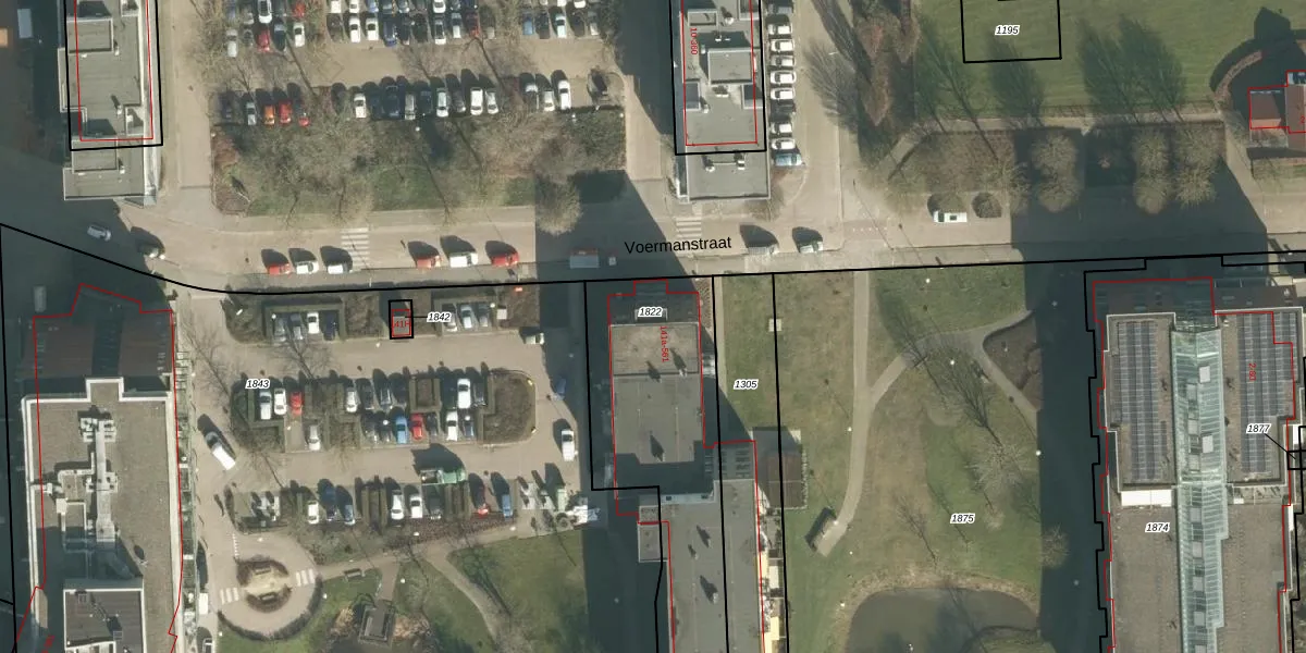 Het perceel waarop Voermanstraat 341 staat heeft een oppervlakte van 1142 m². Dit is een zeer groot perceel. De perceeloppervlakte wordt geregistreerd door het Kadaster. Gedetailleerde informatie over de maten van dit perceel kunt u vinden in het rapport Kadastrale kaart met maatvoering van Voermanstraat 341.