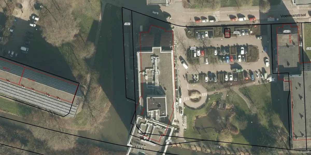 Het perceel waarop Voermanstraat 385 staat heeft een oppervlakte van 7130 m². Dit is een zeer groot perceel. De perceeloppervlakte wordt geregistreerd door het Kadaster. Gedetailleerde informatie over de maten van dit perceel kunt u vinden in het rapport Kadastrale kaart met maatvoering van Voermanstraat 385.