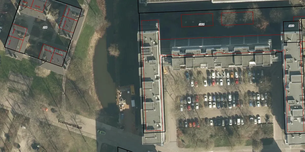 Het perceel waarop Voermanstraat 50 staat heeft een oppervlakte van 4482 m². Dit is een zeer groot perceel. De perceeloppervlakte wordt geregistreerd door het Kadaster. Gedetailleerde informatie over de maten van dit perceel kunt u vinden in het rapport Kadastrale kaart met maatvoering van Voermanstraat 50.