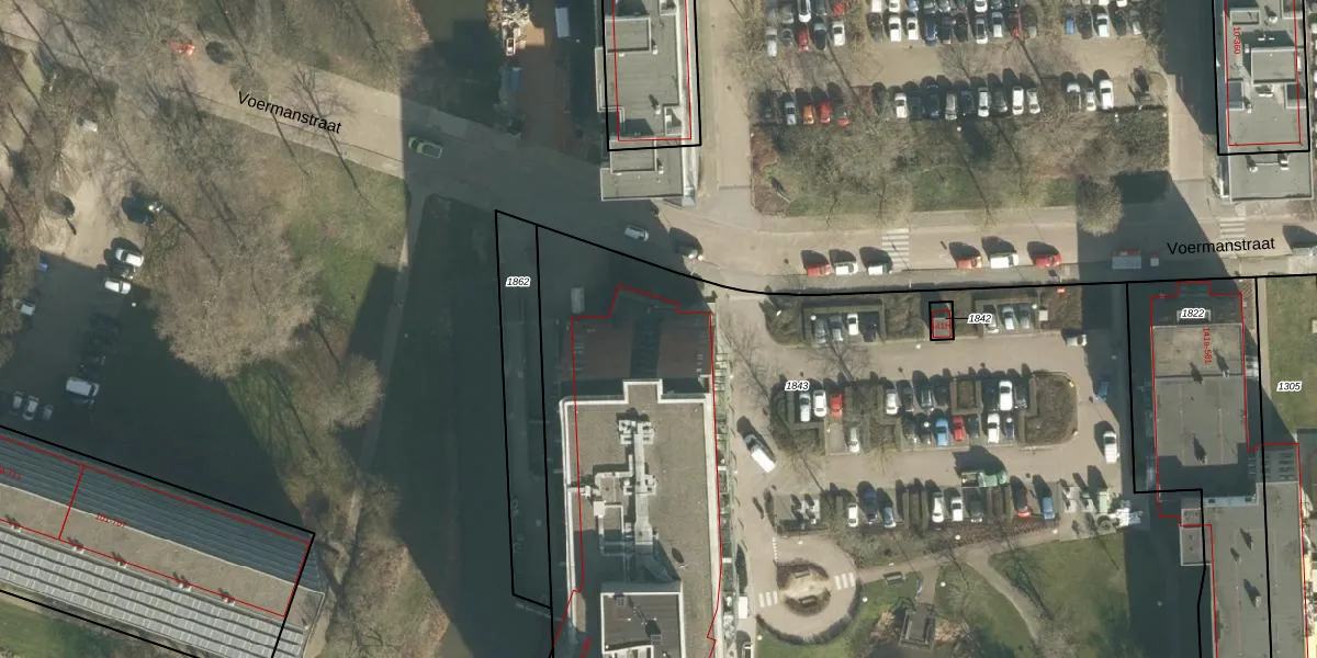 Het perceel waarop Voermanstraat 763 staat heeft een oppervlakte van 7130 m². Dit is een zeer groot perceel. De perceeloppervlakte wordt geregistreerd door het Kadaster. Gedetailleerde informatie over de maten van dit perceel kunt u vinden in het rapport Kadastrale kaart met maatvoering van Voermanstraat 763.