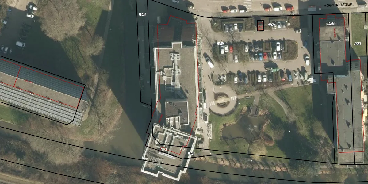 Voermanstraat 871 is gelegen op kadastraal perceel GRC00E1843. Deze kadastrale aanduiding is uniek en wordt gebruikt door het Kadaster om eigendomsrechten en andere zakelijke rechten vast te leggen. Het perceel maakt onderdeel uit van de kadastrale gemeente Gorinchem.