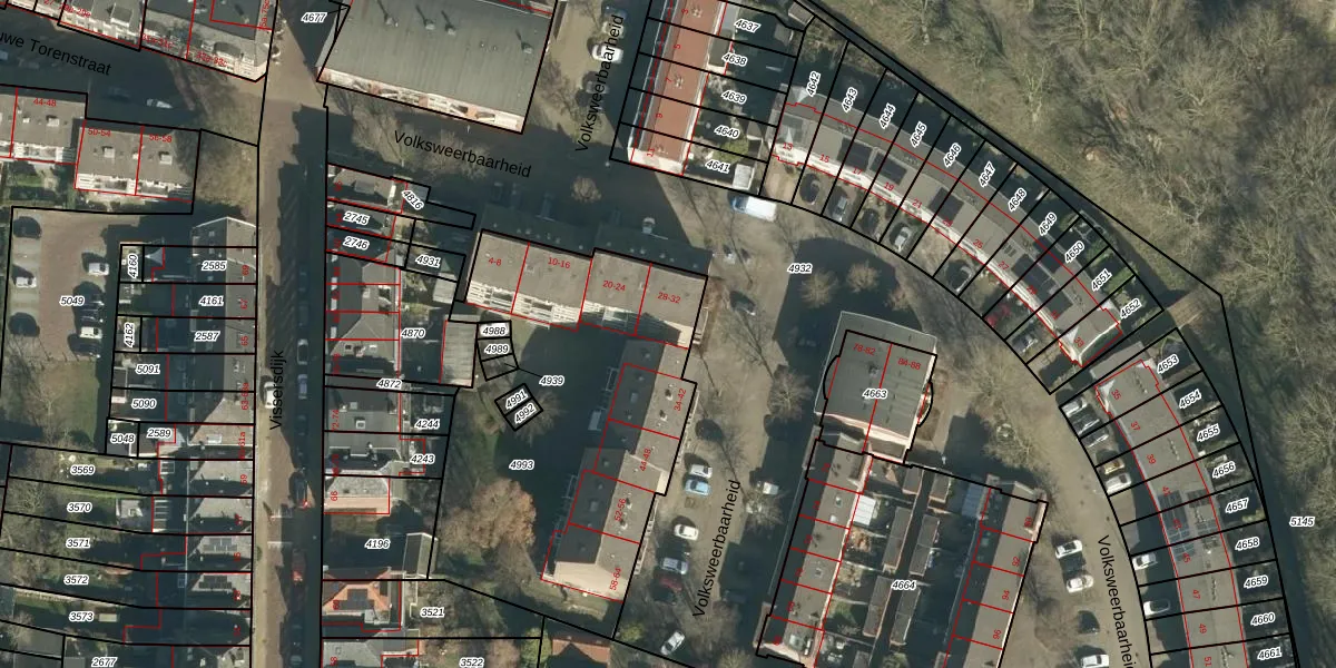 Volksweerbaarheid 32 is gelegen op kadastraal perceel GRC00C4993. Deze kadastrale aanduiding is uniek en wordt gebruikt door het Kadaster om eigendomsrechten en andere zakelijke rechten vast te leggen. Het perceel maakt onderdeel uit van de kadastrale gemeente Gorinchem.