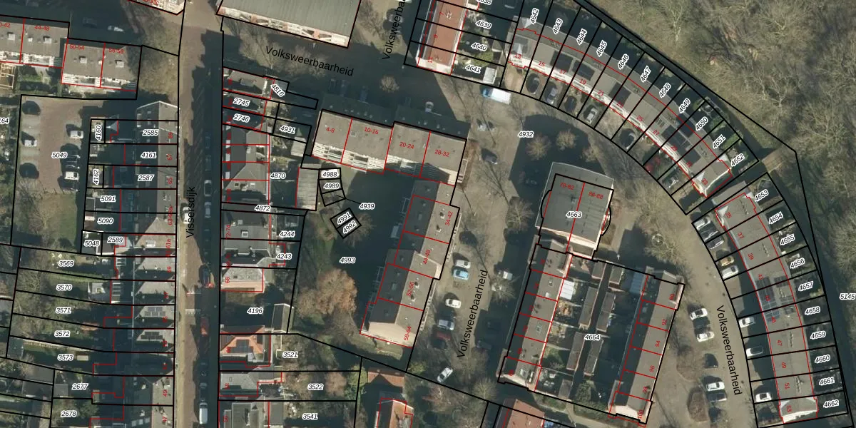 Het perceel waarop Volksweerbaarheid 38 staat heeft een oppervlakte van 1716 m². Dit is een zeer groot perceel. De perceeloppervlakte wordt geregistreerd door het Kadaster. Gedetailleerde informatie over de maten van dit perceel kunt u vinden in het rapport Kadastrale kaart met maatvoering van Volksweerbaarheid 38.