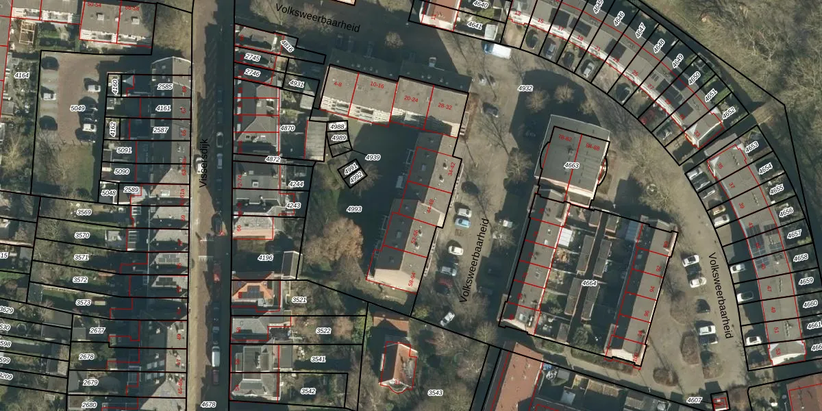 Volksweerbaarheid 48 is gelegen op kadastraal perceel GRC00C4993. Deze kadastrale aanduiding is uniek en wordt gebruikt door het Kadaster om eigendomsrechten en andere zakelijke rechten vast te leggen. Het perceel maakt onderdeel uit van de kadastrale gemeente Gorinchem.
