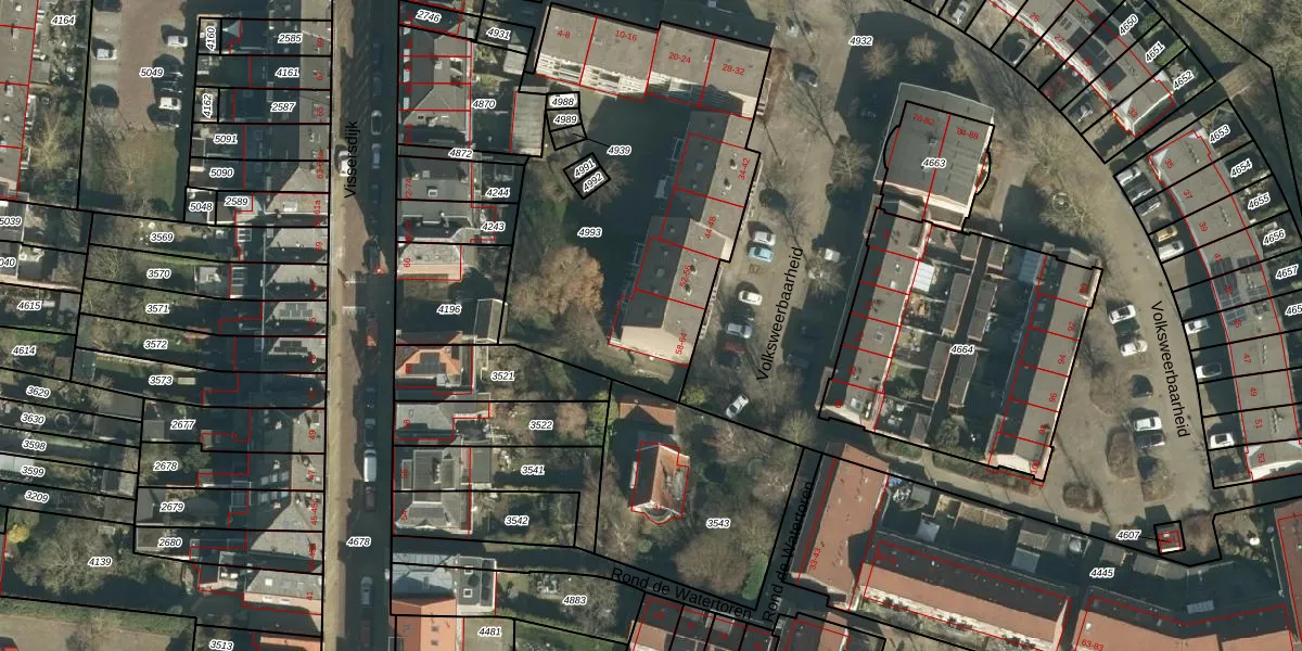 Het perceel waarop Volksweerbaarheid 62 staat heeft een oppervlakte van 1716 m². Dit is een zeer groot perceel. De perceeloppervlakte wordt geregistreerd door het Kadaster. Gedetailleerde informatie over de maten van dit perceel kunt u vinden in het rapport Kadastrale kaart met maatvoering van Volksweerbaarheid 62.
