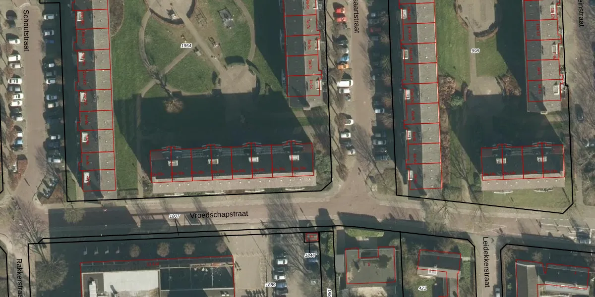 Het perceel waarop Vroedschapstraat 18-a staat heeft een oppervlakte van 9090 m². Dit is een zeer groot perceel. De perceeloppervlakte wordt geregistreerd door het Kadaster. Gedetailleerde informatie over de maten van dit perceel kunt u vinden in het rapport Kadastrale kaart met maatvoering van Vroedschapstraat 18-a.