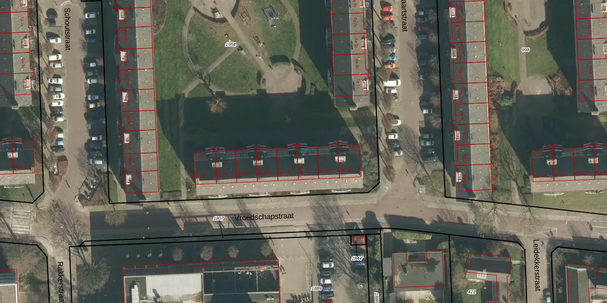 Het perceel waarop Vroedschapstraat 22-a staat heeft een oppervlakte van 9090 m². Dit is een zeer groot perceel. De perceeloppervlakte wordt geregistreerd door het Kadaster. Gedetailleerde informatie over de maten van dit perceel kunt u vinden in het rapport Kadastrale kaart met maatvoering van Vroedschapstraat 22-a.