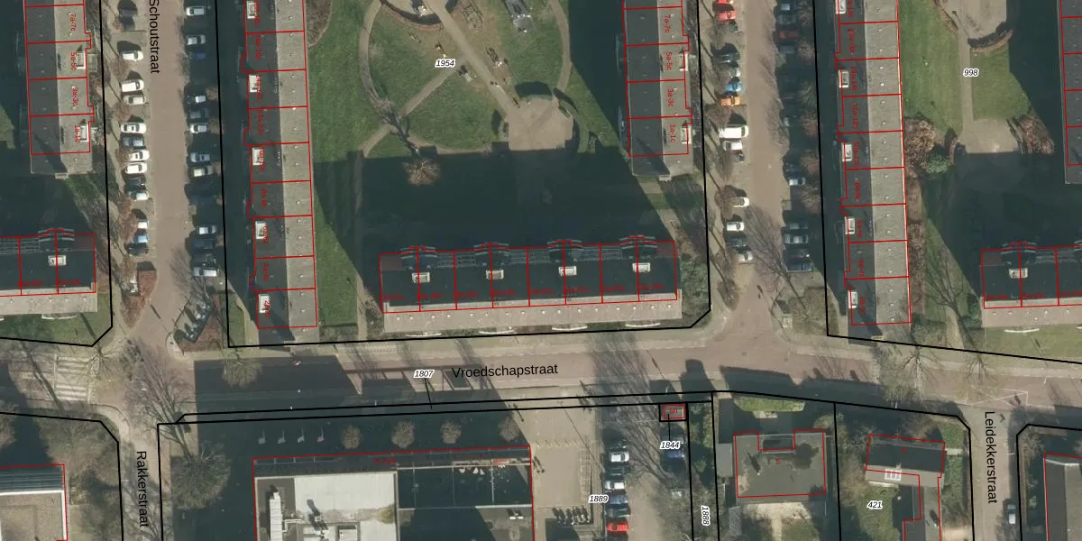 Het perceel waarop Vroedschapstraat 24-c staat heeft een oppervlakte van 9090 m². Dit is een zeer groot perceel. De perceeloppervlakte wordt geregistreerd door het Kadaster. Gedetailleerde informatie over de maten van dit perceel kunt u vinden in het rapport Kadastrale kaart met maatvoering van Vroedschapstraat 24-c.