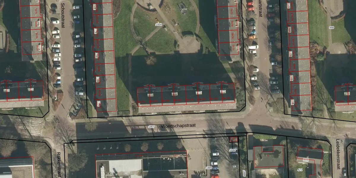 Het perceel waarop Vroedschapstraat 26-a staat heeft een oppervlakte van 9090 m². Dit is een zeer groot perceel. De perceeloppervlakte wordt geregistreerd door het Kadaster. Gedetailleerde informatie over de maten van dit perceel kunt u vinden in het rapport Kadastrale kaart met maatvoering van Vroedschapstraat 26-a.