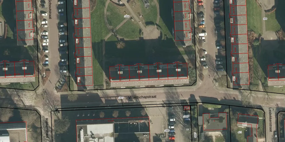 Het perceel waarop Vroedschapstraat 26-c staat heeft een oppervlakte van 9090 m². Dit is een zeer groot perceel. De perceeloppervlakte wordt geregistreerd door het Kadaster. Gedetailleerde informatie over de maten van dit perceel kunt u vinden in het rapport Kadastrale kaart met maatvoering van Vroedschapstraat 26-c.