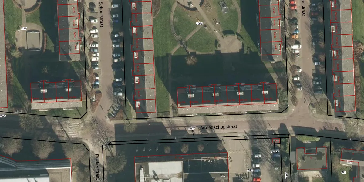 Het perceel waarop Vroedschapstraat 32-a staat heeft een oppervlakte van 9090 m². Dit is een zeer groot perceel. De perceeloppervlakte wordt geregistreerd door het Kadaster. Gedetailleerde informatie over de maten van dit perceel kunt u vinden in het rapport Kadastrale kaart met maatvoering van Vroedschapstraat 32-a.