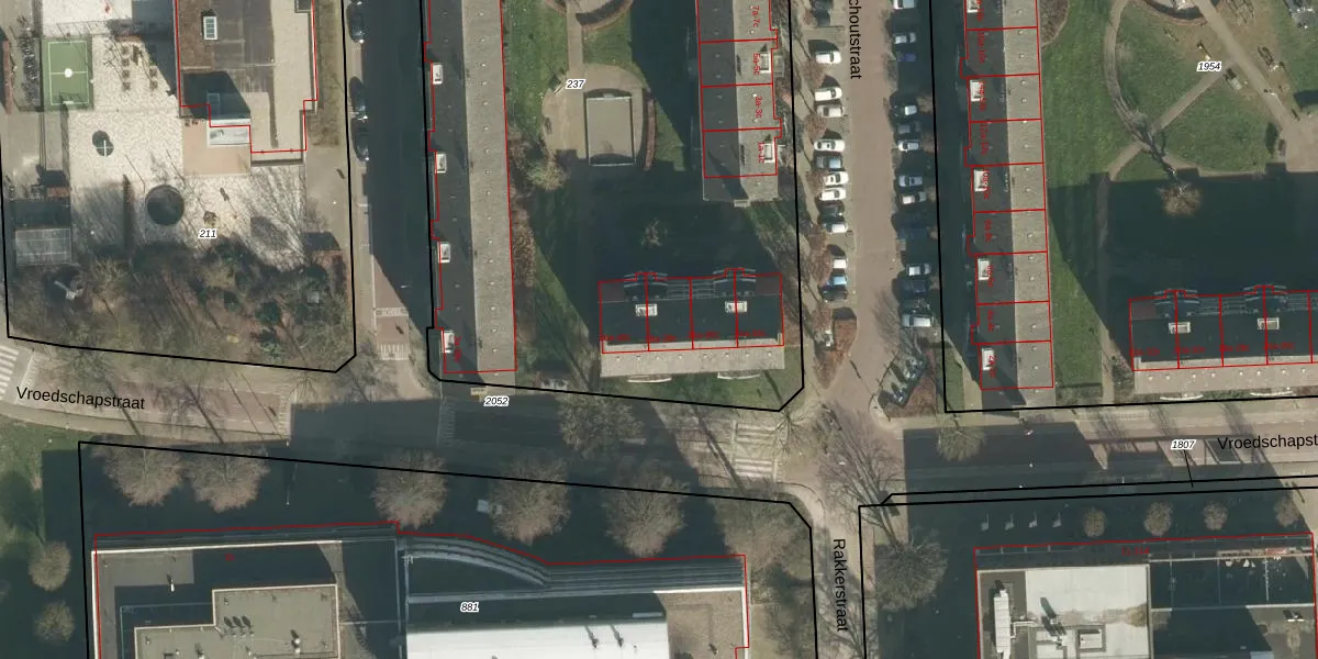 Het perceel waarop Vroedschapstraat 38-c staat heeft een oppervlakte van 5675 m². Dit is een zeer groot perceel. De perceeloppervlakte wordt geregistreerd door het Kadaster. Gedetailleerde informatie over de maten van dit perceel kunt u vinden in het rapport Kadastrale kaart met maatvoering van Vroedschapstraat 38-c.