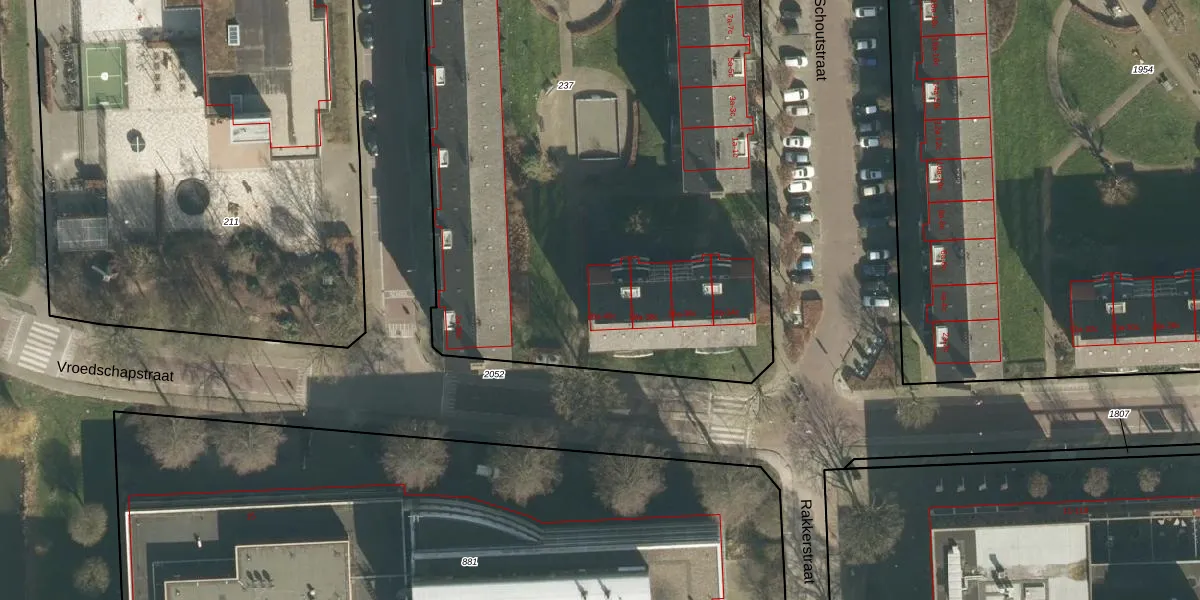 Het perceel waarop Vroedschapstraat 40-b staat heeft een oppervlakte van 5675 m². Dit is een zeer groot perceel. De perceeloppervlakte wordt geregistreerd door het Kadaster. Gedetailleerde informatie over de maten van dit perceel kunt u vinden in het rapport Kadastrale kaart met maatvoering van Vroedschapstraat 40-b.