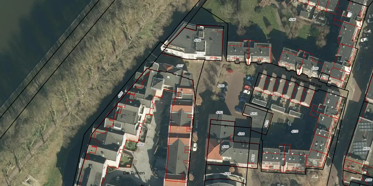 Het adres ligt op het perceel GRC00-D-4335, dat zich in de kadastrale gemeente Gorinchem bevindt. Het perceel is met 3460 m² relatief groot. Het gemiddelde ligt in de kadastrale gemeente Gorinchem op 1662,8 m². Het kleinste perceel in de kadastrale gemeente is 0 m² groot. De grootste perceeloppervlakte is 44,0 ha. Er zijn 48 adressen aanwezig op het perceel. In de Basisregistratie Kadaster (BRK) werden de grenzen van het perceel geregistreerd op 28-05-2003.