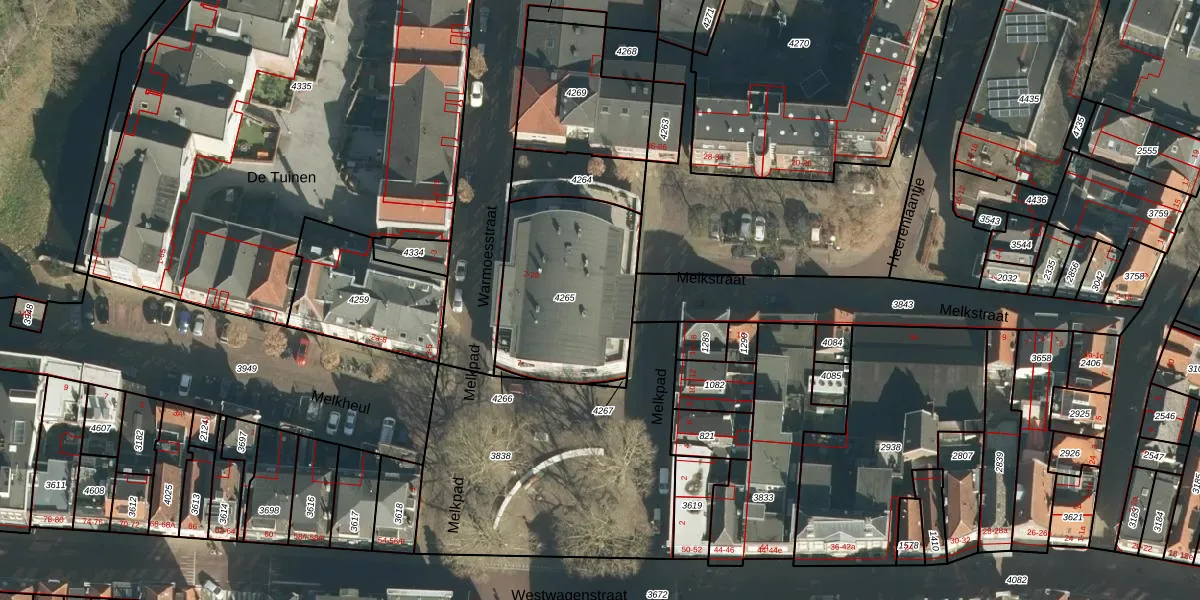 Het perceel waarop Warmoesstraat 4 staat heeft een oppervlakte van 656 m². Dit is een groot perceel. De perceeloppervlakte wordt geregistreerd door het Kadaster. Gedetailleerde informatie over de maten van dit perceel kunt u vinden in het rapport Kadastrale kaart met maatvoering van Warmoesstraat 4.