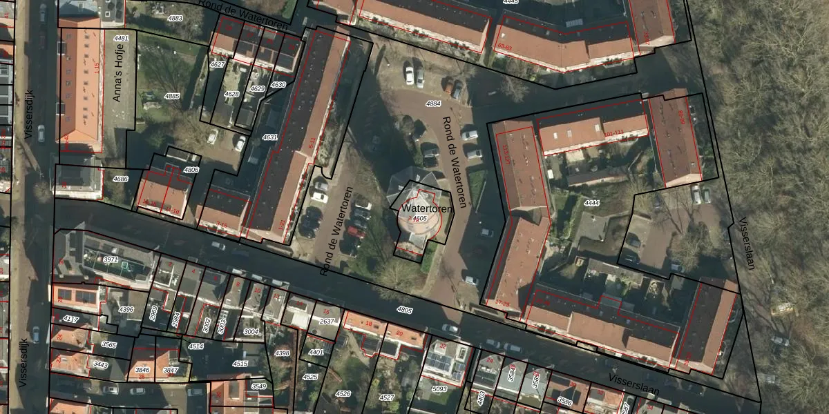 Het perceel waarop Watertoren 2 staat heeft een oppervlakte van 203 m². Dit is een middelgroot perceel. De perceeloppervlakte wordt geregistreerd door het Kadaster. Gedetailleerde informatie over de maten van dit perceel kunt u vinden in het rapport Kadastrale kaart met maatvoering van Watertoren 2.