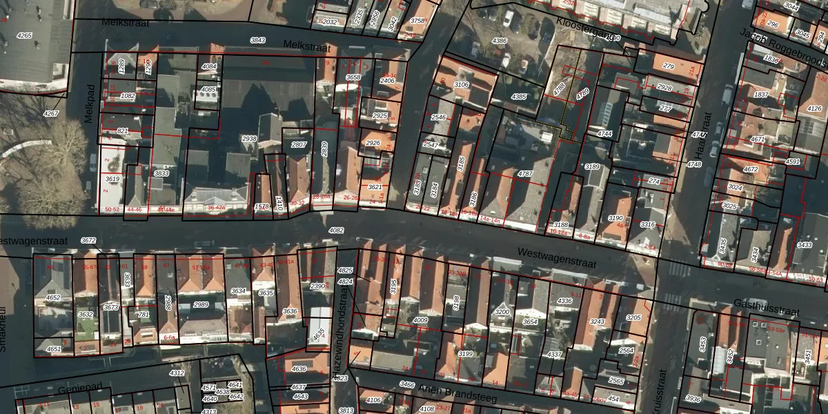 Het perceel waarop Westwagenstraat 22 staat heeft een oppervlakte van 56 m². Dit is een klein perceel. De perceeloppervlakte wordt geregistreerd door het Kadaster. Gedetailleerde informatie over de maten van dit perceel kunt u vinden in het rapport Kadastrale kaart met maatvoering van Westwagenstraat 22.