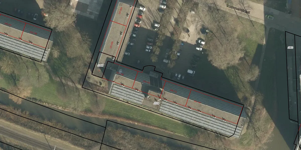 Het perceel waarop Weverstraat 115 staat heeft een oppervlakte van 3042 m². Dit is een zeer groot perceel. De perceeloppervlakte wordt geregistreerd door het Kadaster. Gedetailleerde informatie over de maten van dit perceel kunt u vinden in het rapport Kadastrale kaart met maatvoering van Weverstraat 115.