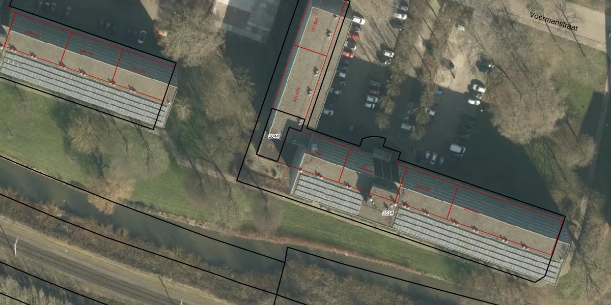 Het perceel waarop Weverstraat 119 staat heeft een oppervlakte van 3042 m². Dit is een zeer groot perceel. De perceeloppervlakte wordt geregistreerd door het Kadaster. Gedetailleerde informatie over de maten van dit perceel kunt u vinden in het rapport Kadastrale kaart met maatvoering van Weverstraat 119.
