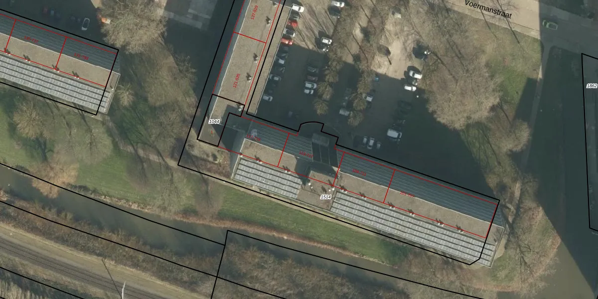 Het perceel waarop Weverstraat 215 staat heeft een oppervlakte van 3042 m². Dit is een zeer groot perceel. De perceeloppervlakte wordt geregistreerd door het Kadaster. Gedetailleerde informatie over de maten van dit perceel kunt u vinden in het rapport Kadastrale kaart met maatvoering van Weverstraat 215.