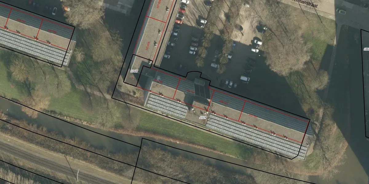 Het perceel waarop Weverstraat 315 staat heeft een oppervlakte van 3042 m². Dit is een zeer groot perceel. De perceeloppervlakte wordt geregistreerd door het Kadaster. Gedetailleerde informatie over de maten van dit perceel kunt u vinden in het rapport Kadastrale kaart met maatvoering van Weverstraat 315.