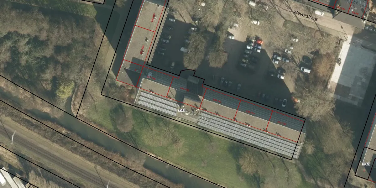 Het perceel waarop Weverstraat 345 staat heeft een oppervlakte van 3172 m². Dit is een zeer groot perceel. De perceeloppervlakte wordt geregistreerd door het Kadaster. Gedetailleerde informatie over de maten van dit perceel kunt u vinden in het rapport Kadastrale kaart met maatvoering van Weverstraat 345.