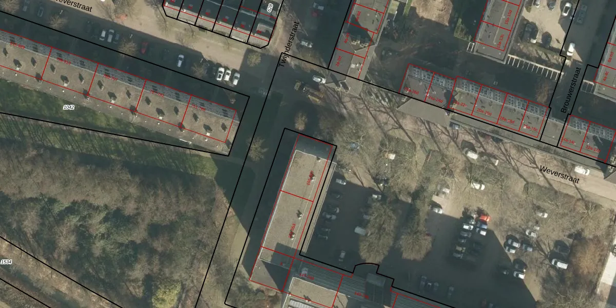 Het perceel waarop Weverstraat 357 staat heeft een oppervlakte van 3172 m². Dit is een zeer groot perceel. De perceeloppervlakte wordt geregistreerd door het Kadaster. Gedetailleerde informatie over de maten van dit perceel kunt u vinden in het rapport Kadastrale kaart met maatvoering van Weverstraat 357.