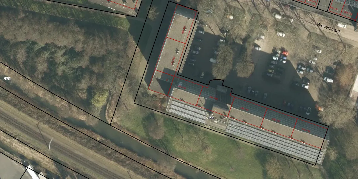Het perceel waarop Weverstraat 447 staat heeft een oppervlakte van 3172 m². Dit is een zeer groot perceel. De perceeloppervlakte wordt geregistreerd door het Kadaster. Gedetailleerde informatie over de maten van dit perceel kunt u vinden in het rapport Kadastrale kaart met maatvoering van Weverstraat 447.