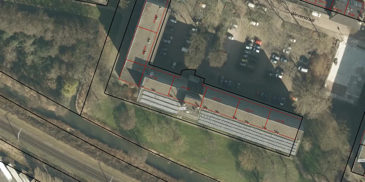Het perceel waarop Weverstraat 745 staat heeft een oppervlakte van 3172 m². Dit is een zeer groot perceel. De perceeloppervlakte wordt geregistreerd door het Kadaster. Gedetailleerde informatie over de maten van dit perceel kunt u vinden in het rapport Kadastrale kaart met maatvoering van Weverstraat 745.