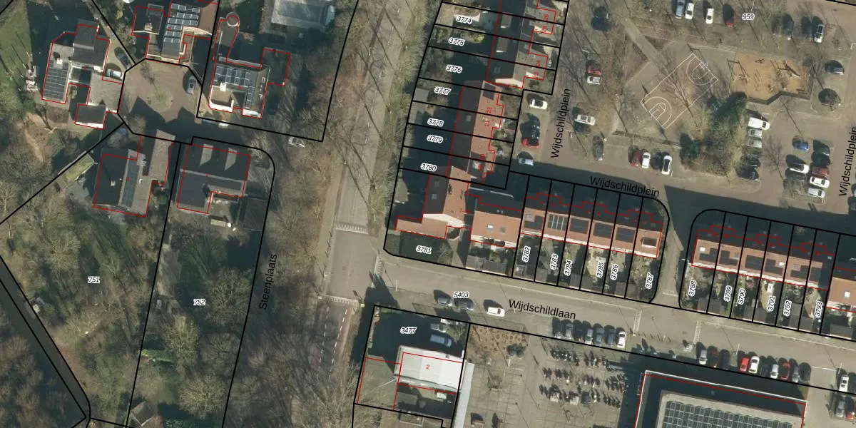 Het perceel waarop Wijdschildplein 13 staat heeft een oppervlakte van 640 m². Dit is een groot perceel. De perceeloppervlakte wordt geregistreerd door het Kadaster. Gedetailleerde informatie over de maten van dit perceel kunt u vinden in het rapport Kadastrale kaart met maatvoering van Wijdschildplein 13.