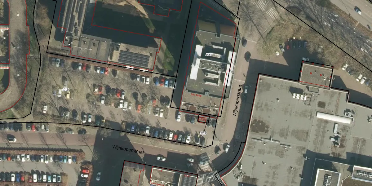 Het perceel waarop Wijnkoperstraat 102 staat heeft een oppervlakte van 1630 m². Dit is een zeer groot perceel. De perceeloppervlakte wordt geregistreerd door het Kadaster. Gedetailleerde informatie over de maten van dit perceel kunt u vinden in het rapport Kadastrale kaart met maatvoering van Wijnkoperstraat 102.