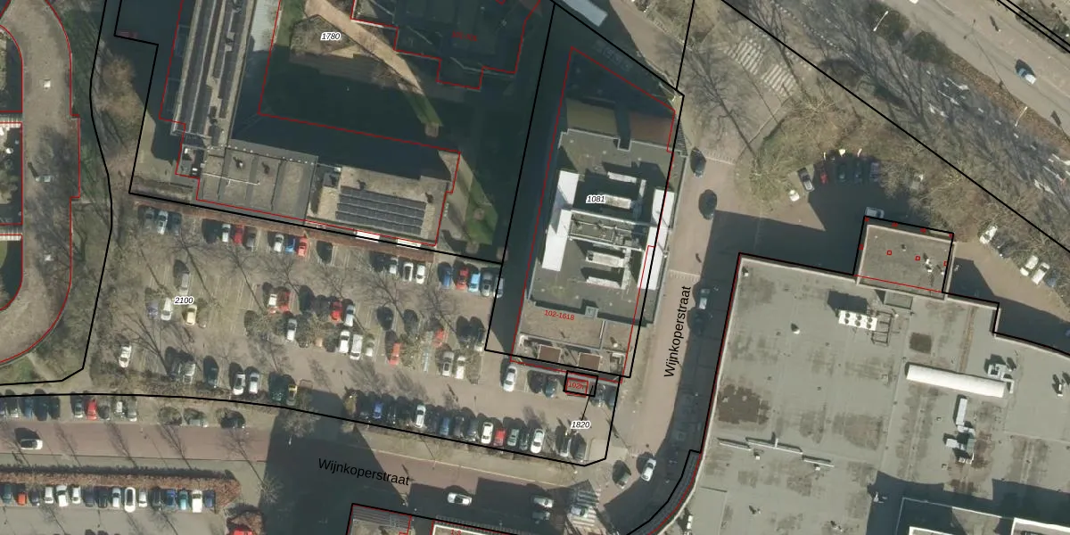 Het perceel waarop Wijnkoperstraat 1608 staat heeft een oppervlakte van 1630 m². Dit is een zeer groot perceel. De perceeloppervlakte wordt geregistreerd door het Kadaster. Gedetailleerde informatie over de maten van dit perceel kunt u vinden in het rapport Kadastrale kaart met maatvoering van Wijnkoperstraat 1608.