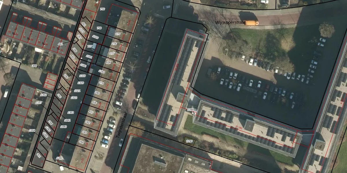 Het perceel waarop Wijnkoperstraat 197 staat heeft een oppervlakte van 5814 m². Dit is een zeer groot perceel. De perceeloppervlakte wordt geregistreerd door het Kadaster. Gedetailleerde informatie over de maten van dit perceel kunt u vinden in het rapport Kadastrale kaart met maatvoering van Wijnkoperstraat 197.