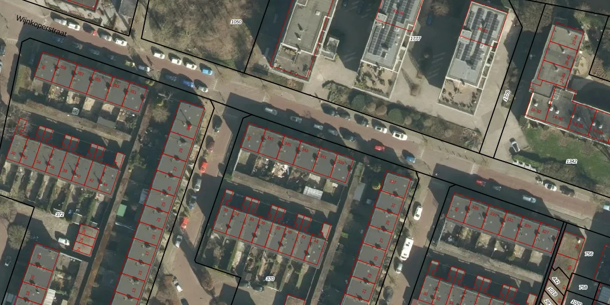 Het perceel waarop Wijnkoperstraat 343 staat heeft een oppervlakte van 7116 m². Dit is een zeer groot perceel. De perceeloppervlakte wordt geregistreerd door het Kadaster. Gedetailleerde informatie over de maten van dit perceel kunt u vinden in het rapport Kadastrale kaart met maatvoering van Wijnkoperstraat 343.