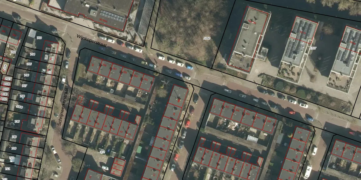 Het perceel waarop Wijnkoperstraat 349 staat heeft een oppervlakte van 7194 m². Dit is een zeer groot perceel. De perceeloppervlakte wordt geregistreerd door het Kadaster. Gedetailleerde informatie over de maten van dit perceel kunt u vinden in het rapport Kadastrale kaart met maatvoering van Wijnkoperstraat 349.
