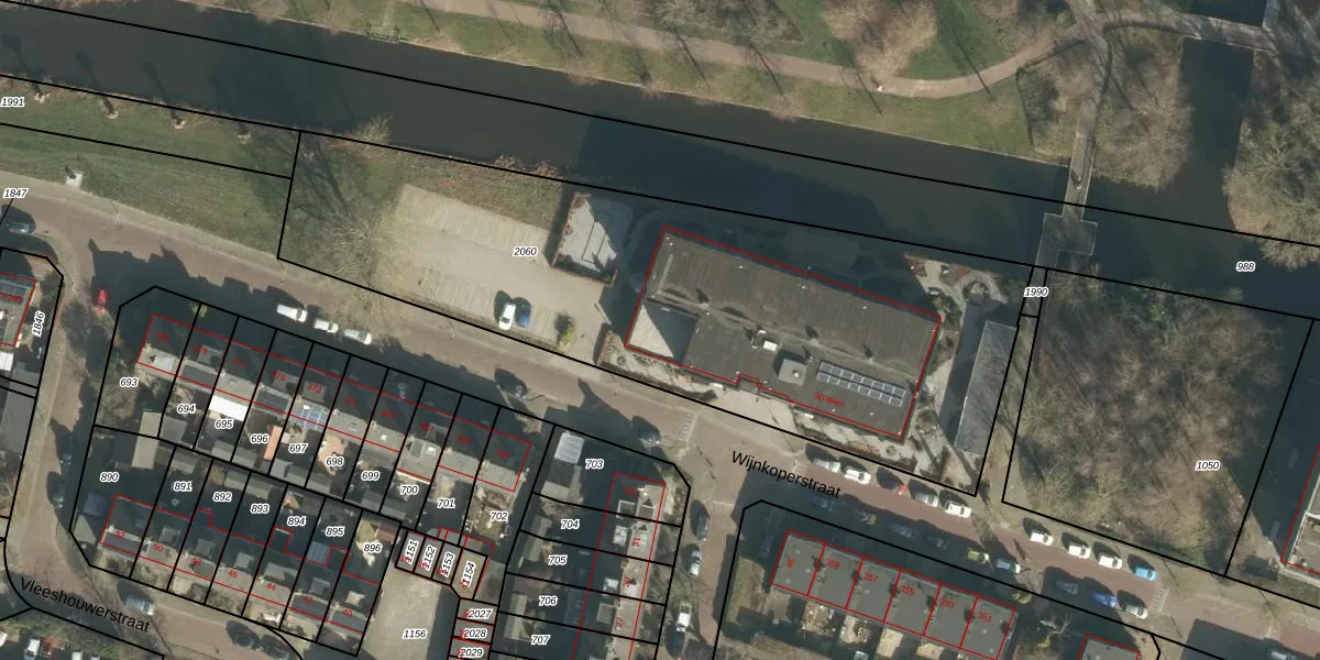 Het perceel waarop Wijnkoperstraat 92-b staat heeft een oppervlakte van 3095 m². Dit is een zeer groot perceel. De perceeloppervlakte wordt geregistreerd door het Kadaster. Gedetailleerde informatie over de maten van dit perceel kunt u vinden in het rapport Kadastrale kaart met maatvoering van Wijnkoperstraat 92-b.