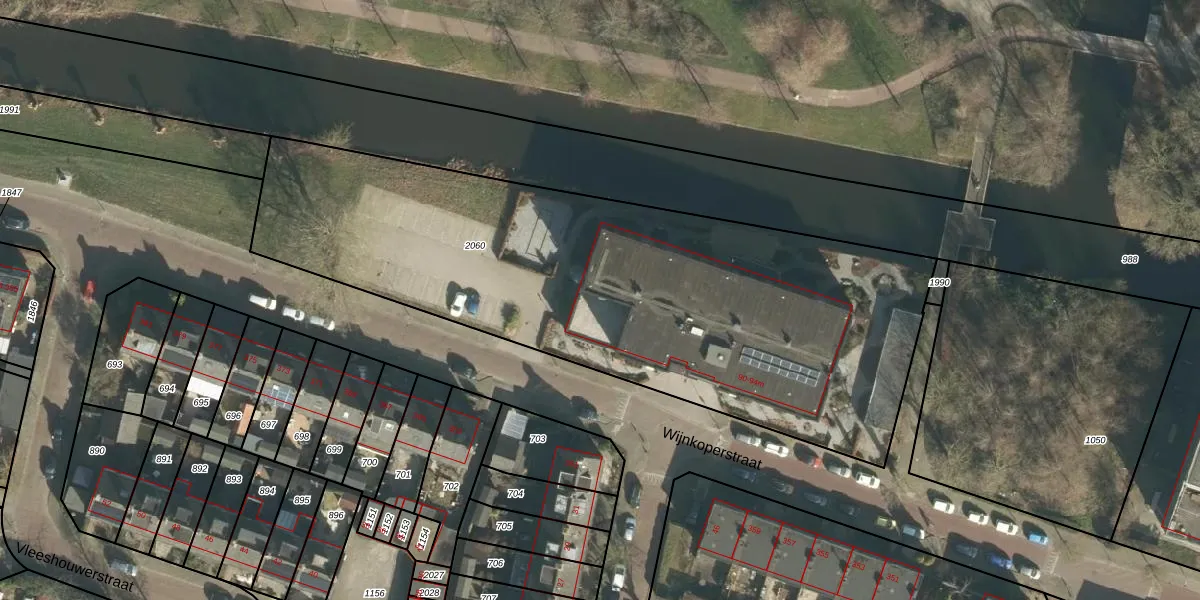 Het perceel waarop Wijnkoperstraat 94-b staat heeft een oppervlakte van 3095 m². Dit is een zeer groot perceel. De perceeloppervlakte wordt geregistreerd door het Kadaster. Gedetailleerde informatie over de maten van dit perceel kunt u vinden in het rapport Kadastrale kaart met maatvoering van Wijnkoperstraat 94-b.