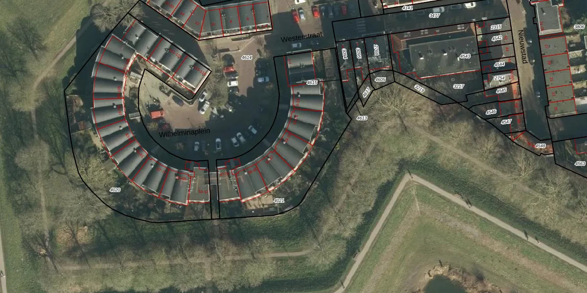 Wilhelminaplein 25 is gelegen op kadastraal perceel GRC00D4021. Deze kadastrale aanduiding is uniek en wordt gebruikt door het Kadaster om eigendomsrechten en andere zakelijke rechten vast te leggen. Het perceel maakt onderdeel uit van de kadastrale gemeente Gorinchem.