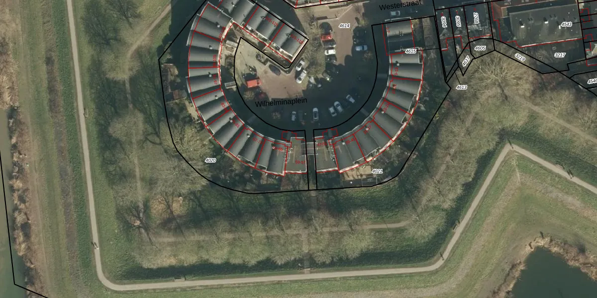 Wilhelminaplein 55 is gelegen op kadastraal perceel GRC00D4020. Deze kadastrale aanduiding is uniek en wordt gebruikt door het Kadaster om eigendomsrechten en andere zakelijke rechten vast te leggen. Het perceel maakt onderdeel uit van de kadastrale gemeente Gorinchem.
